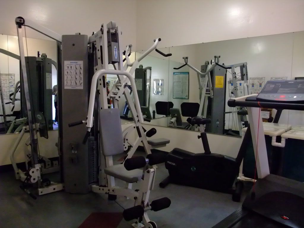 a very tiny gym. i brought my running shoes but i havent started moving my ass yet...